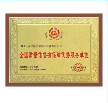 鑫云華制冷榮獲全國質(zhì)量信譽(yù)